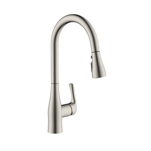 A pull-start kitchen faucet activates water flow when the spray head is pulled and stops automatically when released. This intuitive control improves hygiene and convenience, offering a practical alternative to traditional handle-operated kitchen faucets.